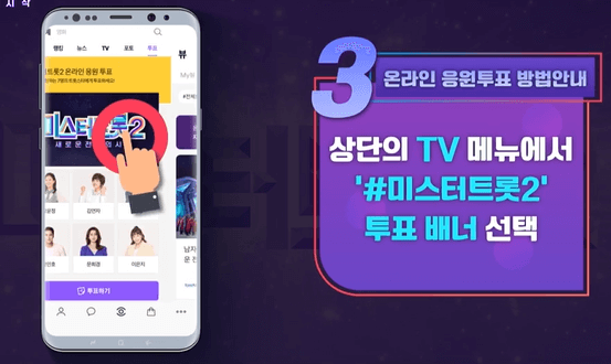 3.미스터트롯2 온라인 투표참여하기 배너가 보이면 배너를 클릭하고 투표해주시면 됩니다.