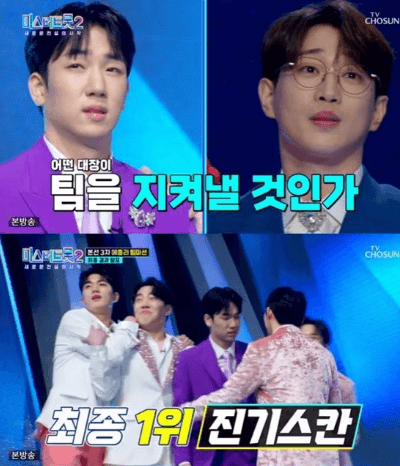 최종적으로 진기스칸이 1위, 뽕드림이 2위, 꿀벌즈가 3위, 미스터 뽕샤인이 4위, 뽕플릭스가 5위에 랭크됐다. 진기스칸 팀원 5명이 전원 다음 라운드에 직행한 가운데 추가 합격자로 김용필, 박성온, 나상도, 박지현, 이하준, 장송호, 진해성, 송민준, 황민호, 송도현, 안성훈 등 11명이 호명돼 총 16명이 4차전을 치르게 되엇습니다.
