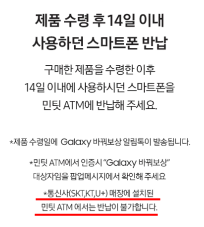 가까운 민팃 ATM 위치를 손쉽게 찾을 수 있습니다. 이 때 새로운 폰을 사기위해 110만원까지 보상받을 수 있는데 보상판매반납은 통신사매장에 설치된 곳에서는 반납 불가라는 점 꼭 알아두세요.