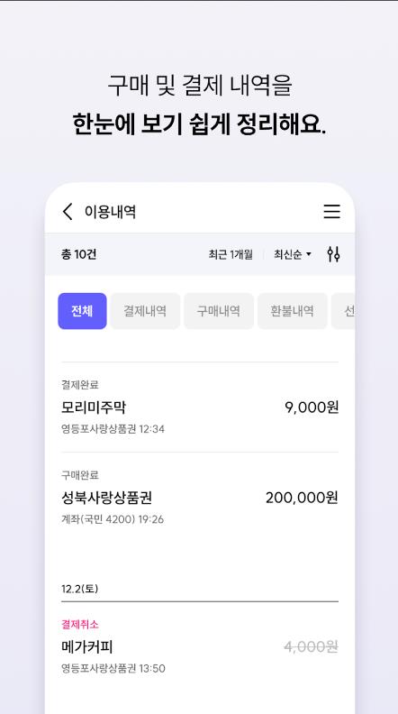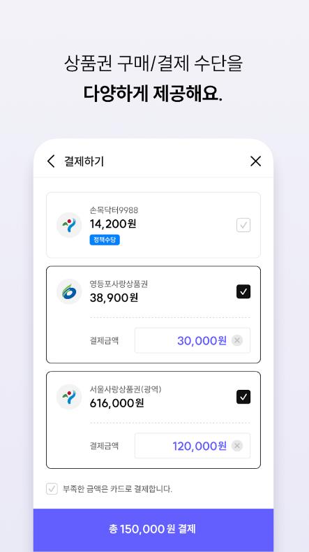 - QR코드 및 비대면 결제: 보유한 상품권을 합산하여 결제하거나, 부족한 금액은 카드로 결제할 수 있습니다.