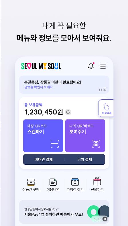 서울Pay+ 앱은 시민과 소상공인을 위한 다양한 기능을 통해 서울시민의 일상을 더욱 편리하고 풍요롭게 만들어 줍니다.