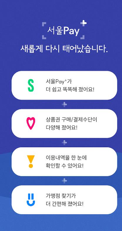 서울Pay+ 앱은 서울시의 새로운 시민생활 플랫폼으로, 서울사랑상품권 구매와 사용, 가맹점 신청 및 조회, 정책수당 지급과 사용 등 다양한 기능을 제공합니다. 이 앱은 시민과 소상공인 모두에게 편리함을 제공하여 일상생활을 더욱 편리하게 만듭니다.